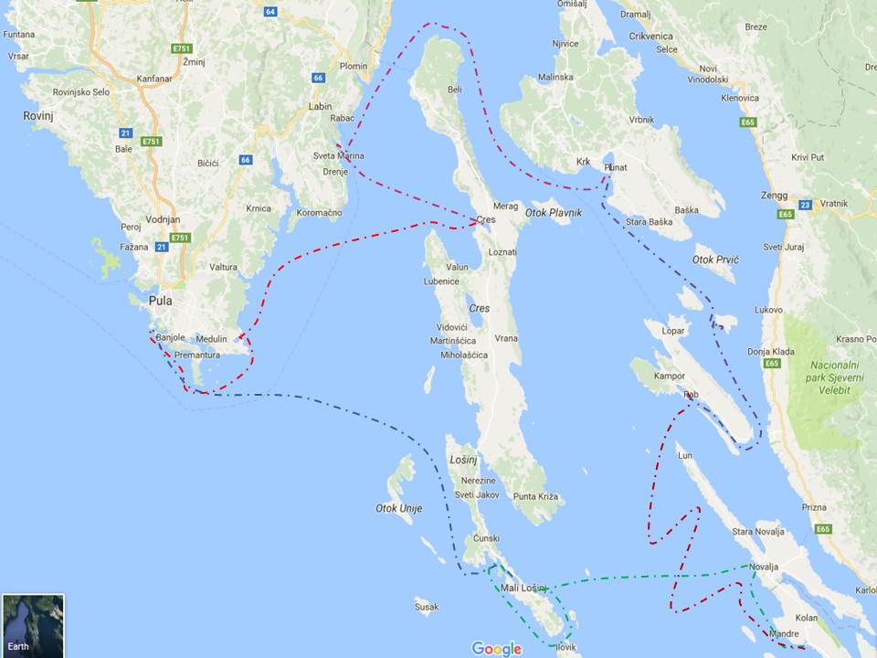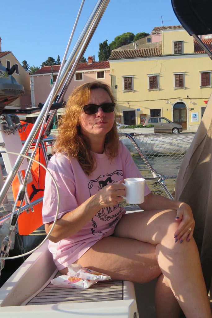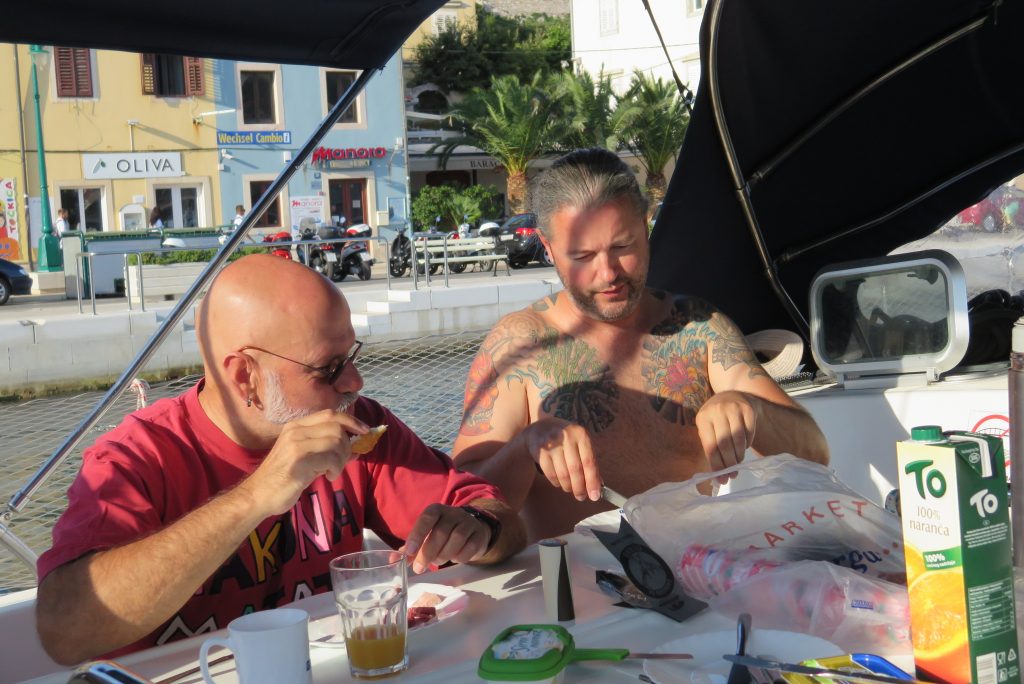 Dann geht es endlich los. Die Insel Pag wird anvisiert. Nach einem kurzen Päuschen in einer Bucht auf der Ostseite von Mali Losinj geht es auf direktem Weg nach Novalja. Ungefähr 17 Uhr erreichen wir Novalja und werden herb enttäuscht. Entgegen dem Hafenhandbuch gibt es für grosse Yachten keine Festmacher und Bojen, der Hafen stinkt, ist schmutzig und Sanitäranlagen sind auch nicht vorhanden.
